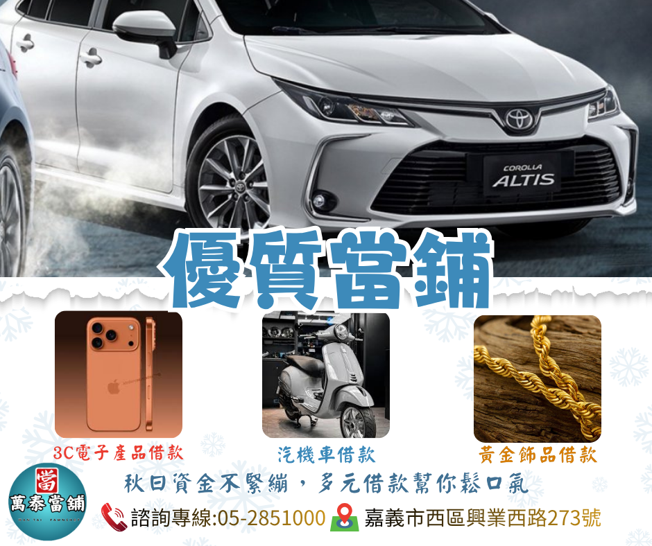 嘉義市萬泰當舖-嘉義當舖推薦,嘉義汽車借款,嘉義機車借款,嘉義借錢24h,假日當舖,合法當鋪利息最低